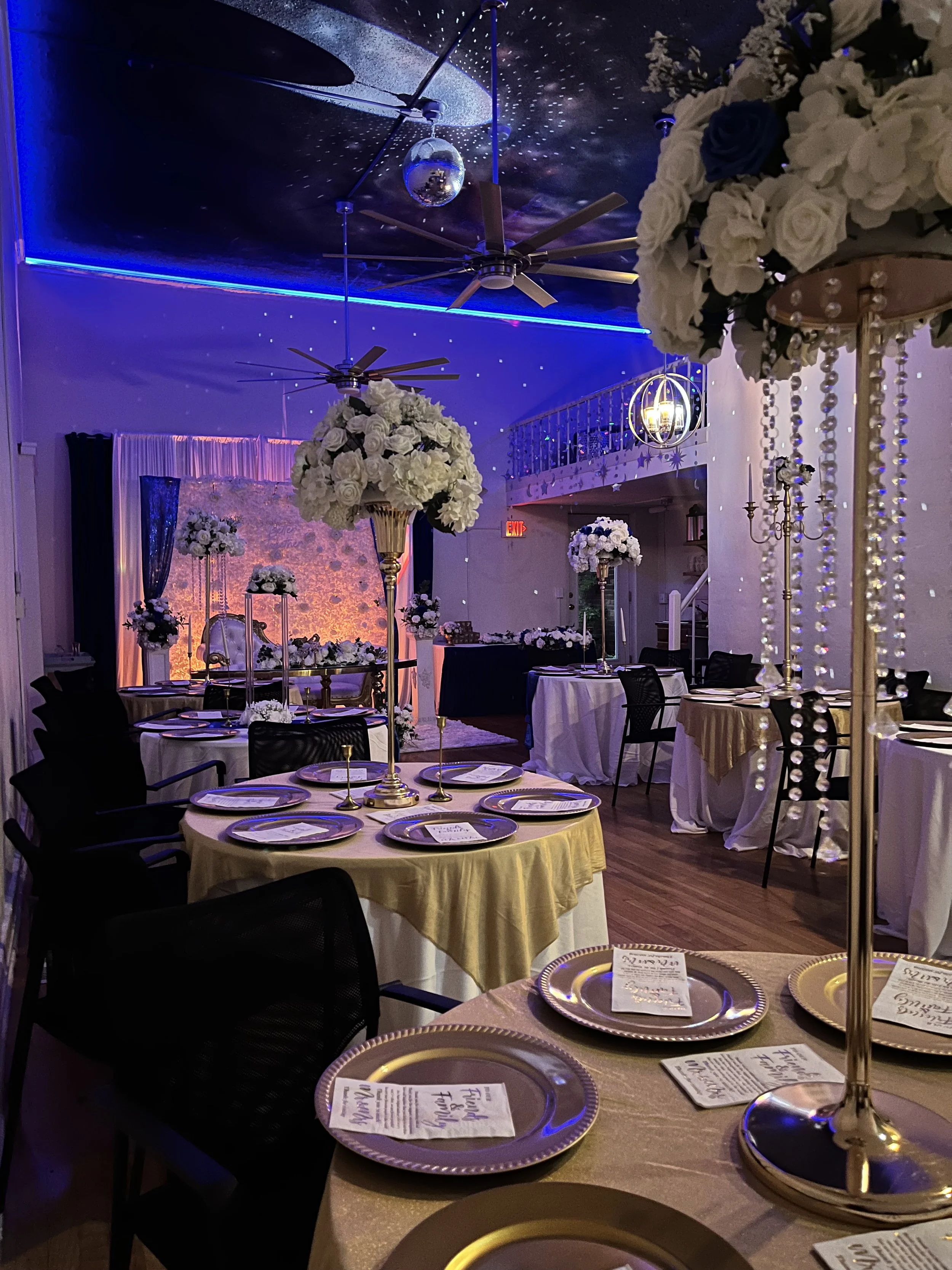 We will install any decorations that you are using for the event. We do not create balloon arches or swags but we are happy to install a pre-made one.