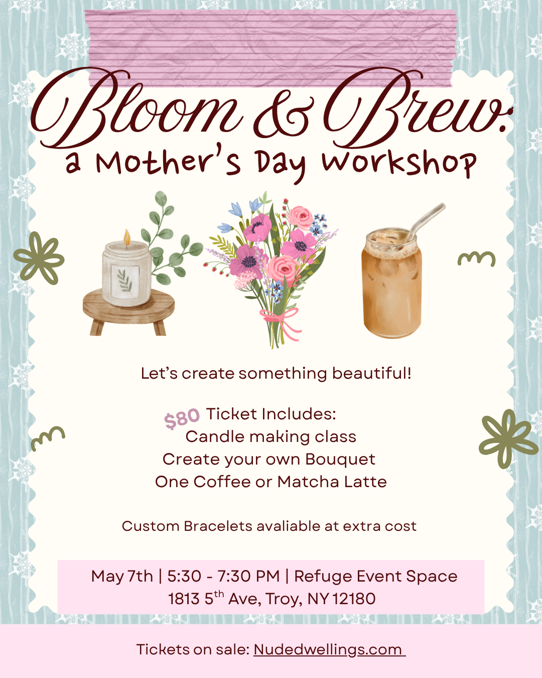 Engage in the art of candle making and bouquet creation while savoring a thoughtfully prepared Matcha or Latte from Green and Grounded.