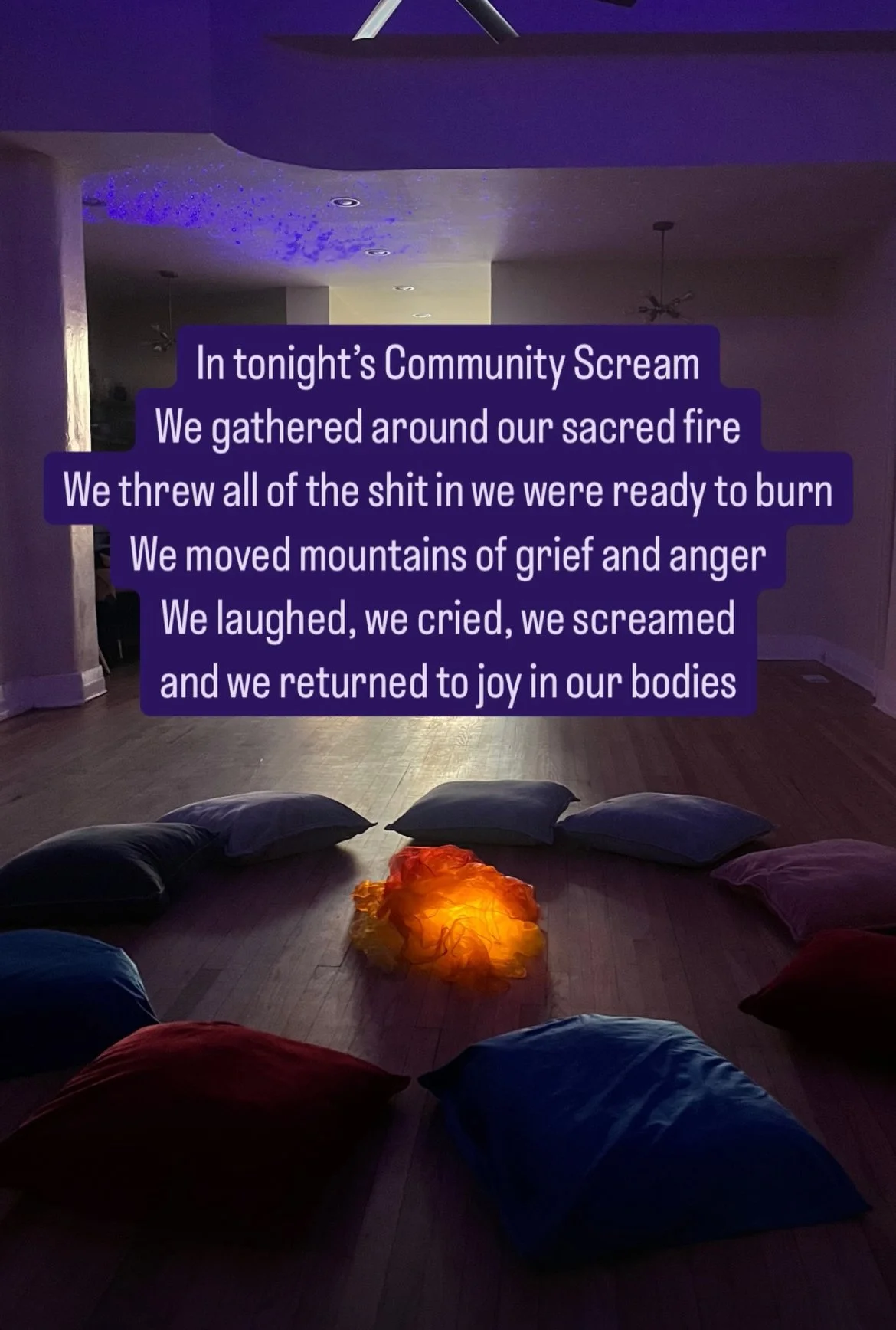 If you’ve never been to a Community Scream at Refuge here’s what to expect - this is more than just screaming in a room with other people. Tara guides the group through a community ritual to release big emotions and then a series of somatic exercises to embody and process the emotions. It can be intense and it is incredibly cathartic. We scream, we cry, we shake, we laugh, and we return to joy in our bodies. Tara has been holding this space for our community monthly since November.