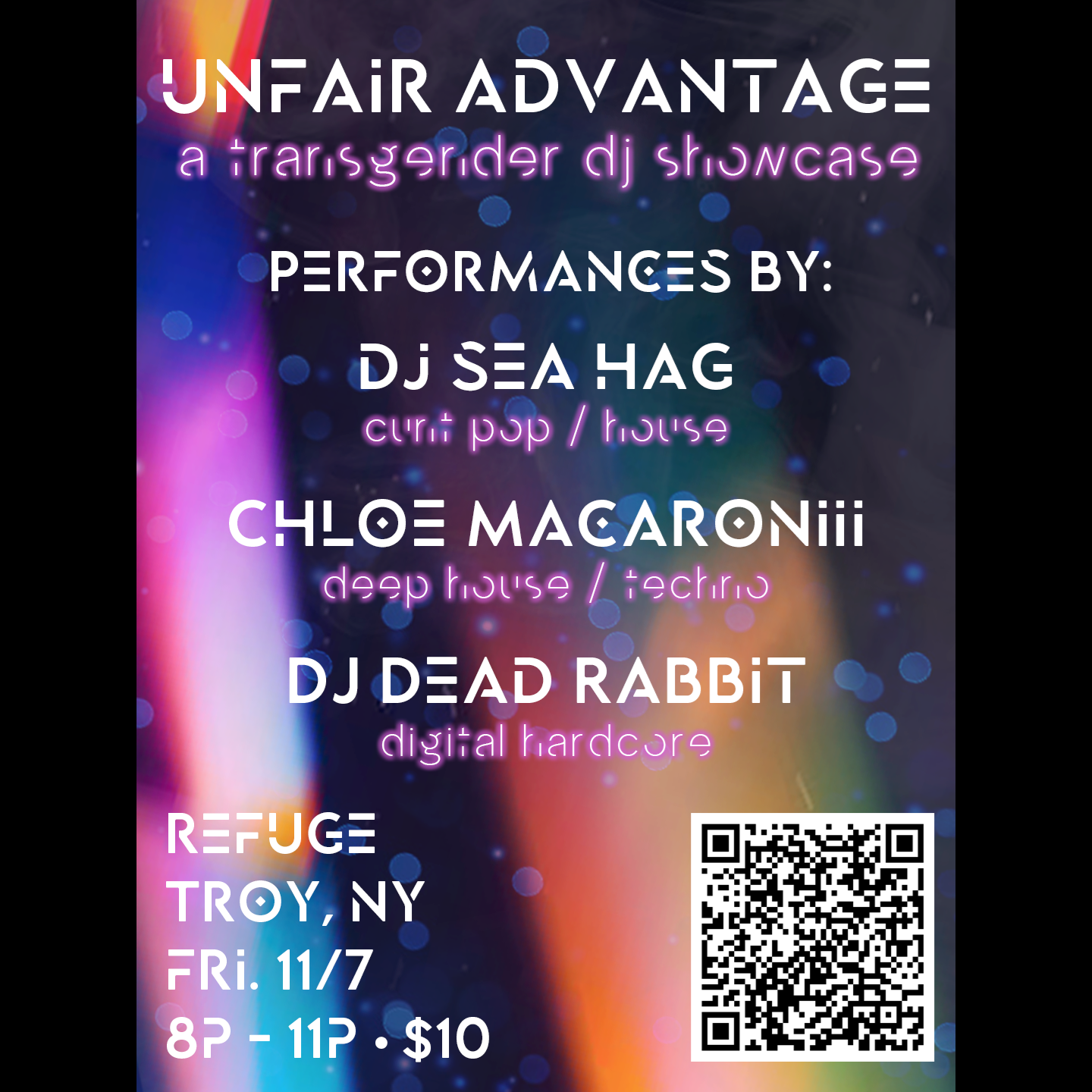 A dance party curated by trans djs of the 518 featuring DJ Dead Rabbit, DJ Sea Hag, & Chloe Macaroniii